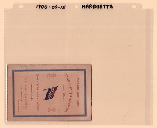 Archival Image Front Side || GGA-PL-MISC-02 MC02 Atlantic Transport Line Marquette 15 September 1900, New York to London First Class. | GGA Image ID # . Click to View a Larger Image.