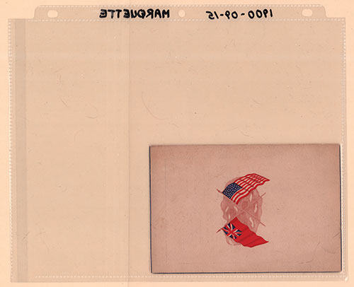 Elegant heavy-stock passenger list from the Atlantic Transport Line SS Marquette, voyage from New York to London, 15 September 1900. Ornate covers, ATL flag, and flag-cross motif. Includes notable passengers and in VG condition.